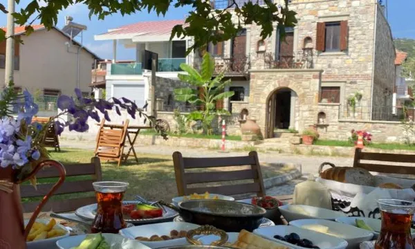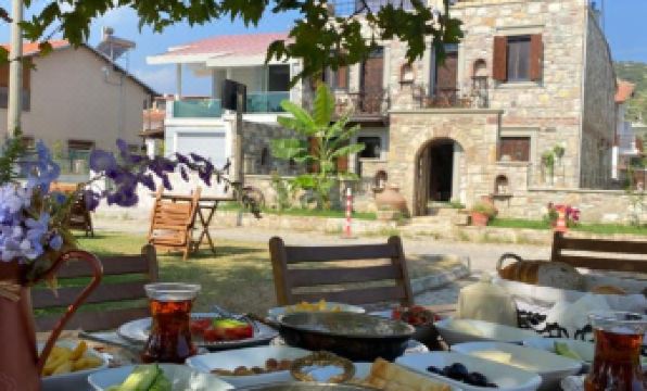 Otel oldukca guzel bir tas yapi Odalar ve bahce cok guzel detaylarla donatilmis. Oda iclerinde yeralan kapilarda cok guzel ahsap oyma ornekleri sunulmus Bunlara ek olarak Adnan bey ve Seref bey sıcak ,samimi ve dostane yaklasimlari Seref beyle n esinini hazirladigi mukemmel kahvaltiyla birlesince tatiliniz cok guzellesiyor Her sey icin cok tesekkurler 🙏