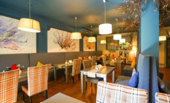 The cafe of the PolyArt Park hotel.