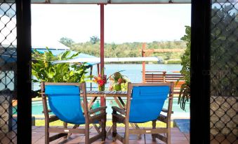 Nous avions une chambre de luxe #12 avec vue sur la piscine, le lagon terrasse avec chaises et tables a labrie de la pluie, climatisé, accessoirespourse faire à manger de base, grande douche etc...